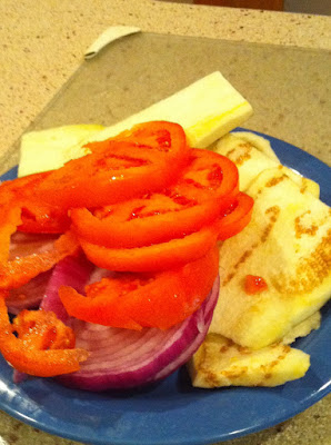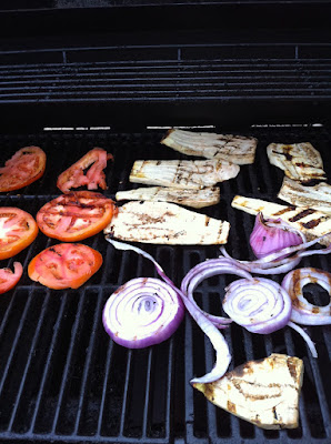 Preheat your grill while slicing veggies. Place veggies on grill and heat thoroughly. I like to brown them slightly so that they get soft.