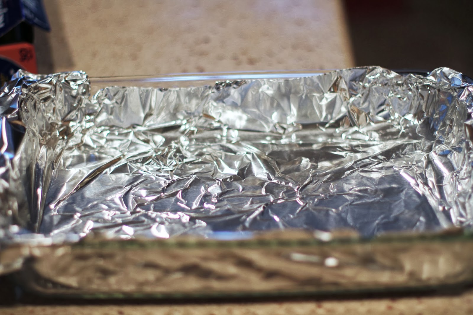 Line a 13 x 9 inch pan with aluminum foil and spray with Pam or a cooking spray of your choice