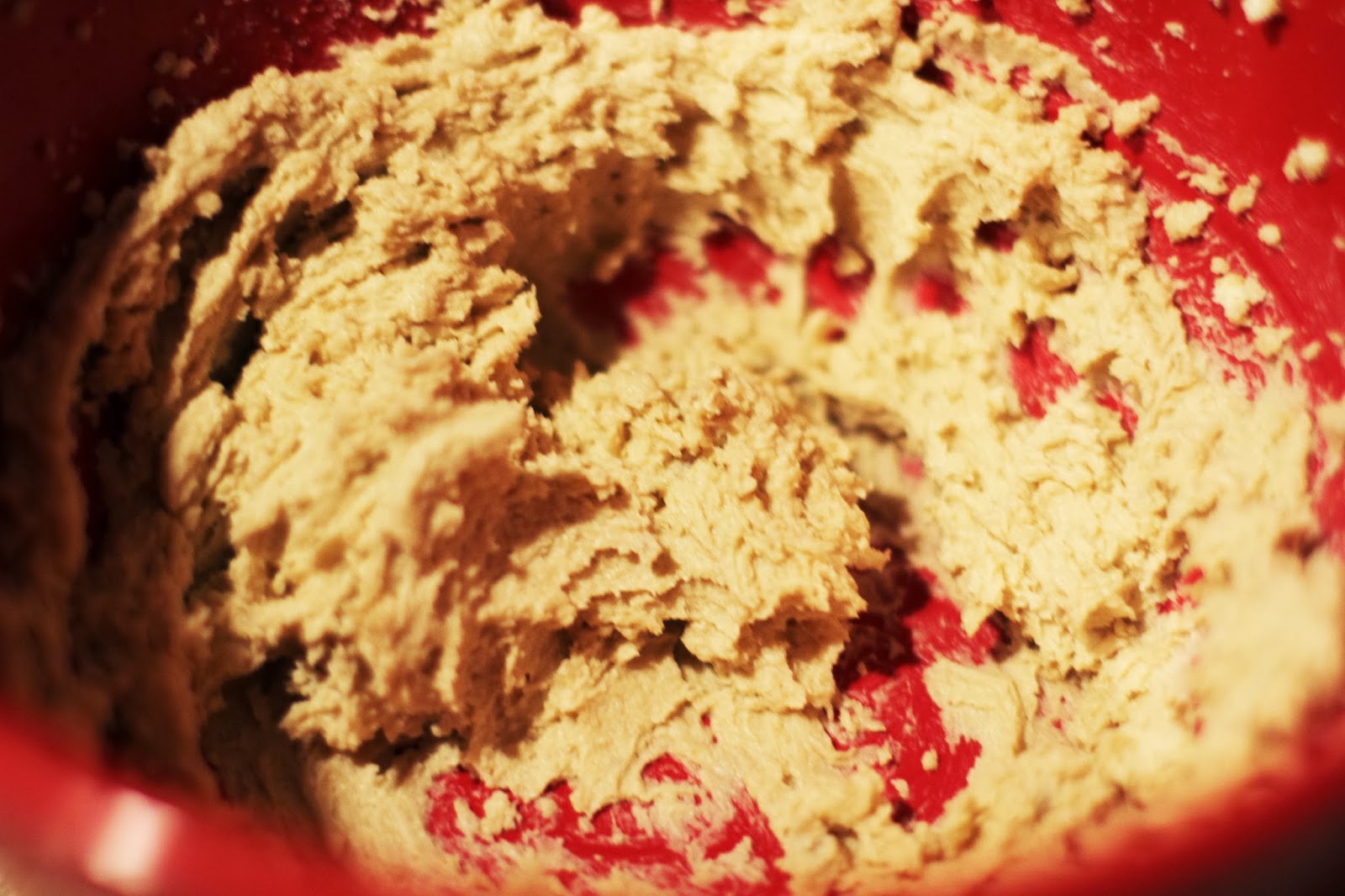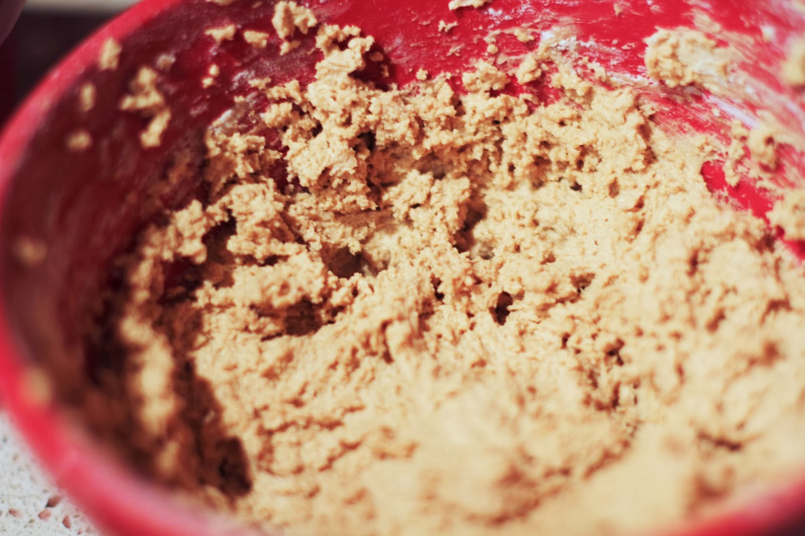Add your flour and baking soda mixture to your peanut butter and sugar mixture gradually. I do 1/4 of the mixture at a time.