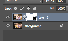 Step 4: Add a layer to image two (not the background image) and lower the opacity to where you can see both images on your screen (will look like the above photo). I lowered to 43% because I could see fairly clearly where I needed to work.