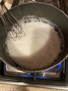 After 10 minutes, it will look like this - with most of the sugar dissolved.